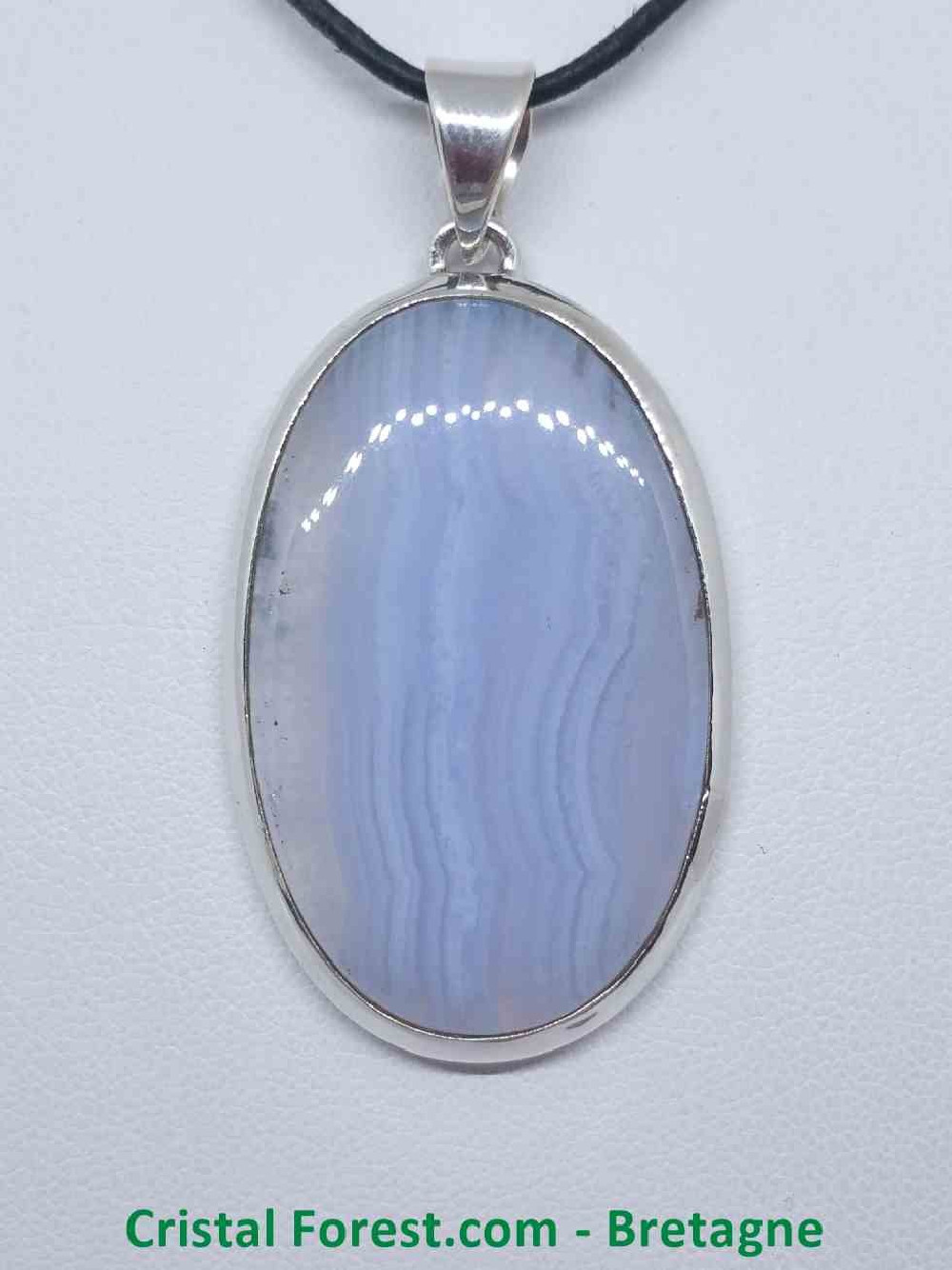Divers modèles de sertissage vous sont proposés ici pour ces pendentifs de Calcédoine bleue. Pierre de sérénité mais aussi de communication, elle est d'une grande aide lors des prises de parole.